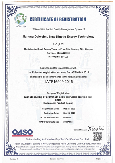 As of the end of 2023, our company has passed ISO9001 quality system certification and IATF16949 quality management system certification: we always adhere to the business philosophy of quality first and customer first, providing customers with high-quality products with advanced technology and high-quality materials.